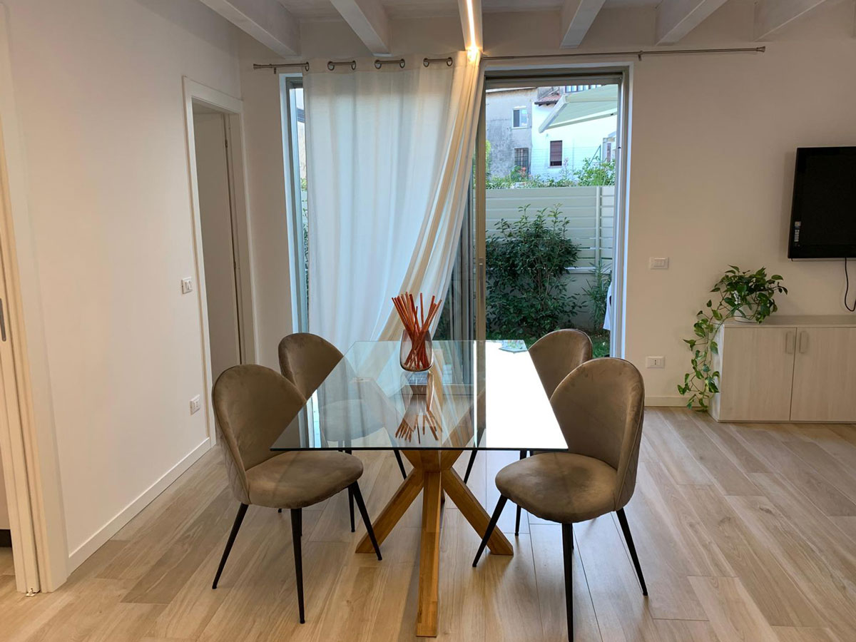 L’accesso avviene tramite un giardino privato, perfetto per rilassarsi all’aperto.