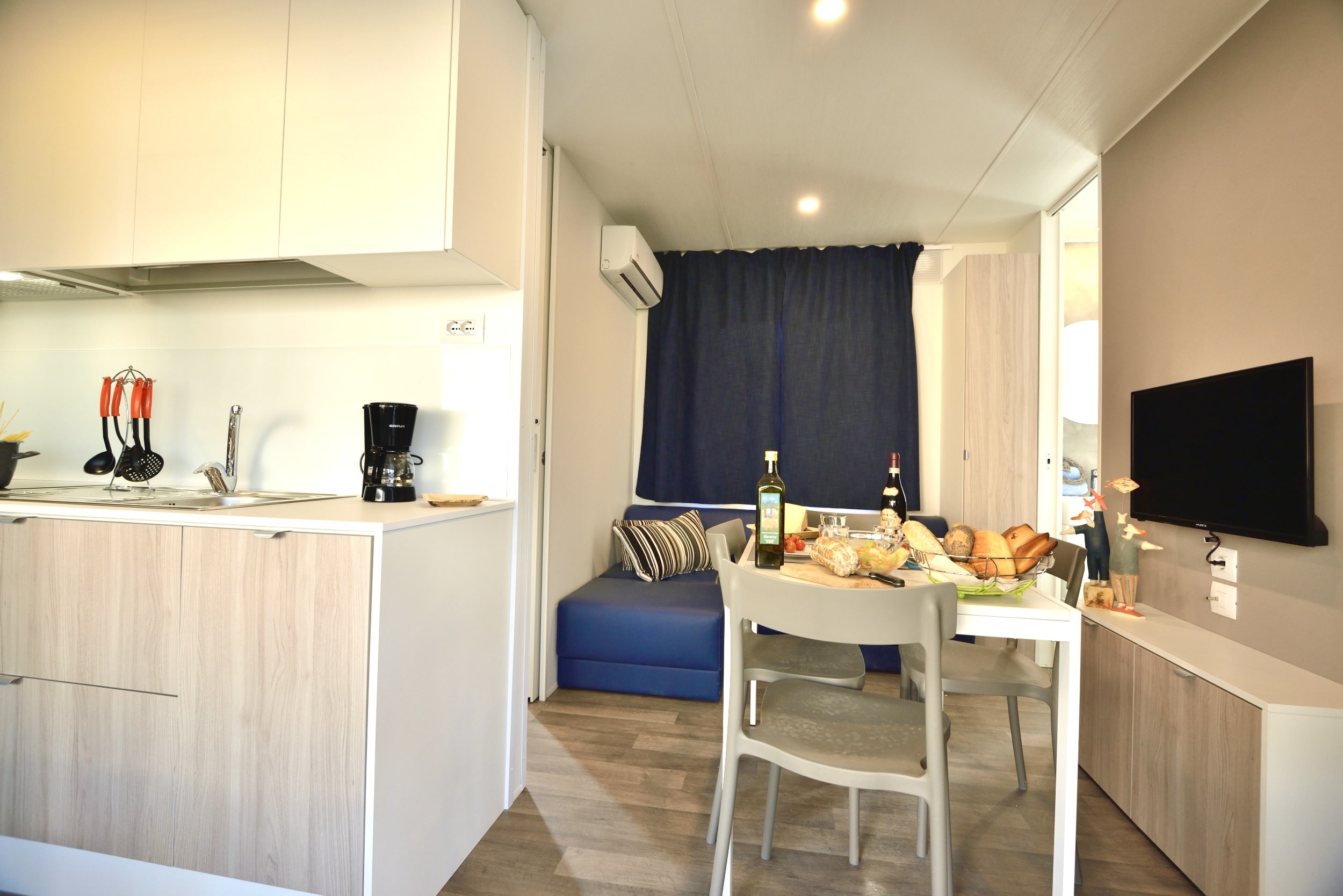 La casa mobile GARDEN SPA DOG può ospitare fino a 5 persone. La casa mobile, con una superficie di 30 mq, offre spazi funzionali e confortevoli; la sistemazione dispone di soggiorno con aria condizionata, angolo cottura e divano, 1 camere da letto matrimoniale, 1 camera da letto con 3 letti singoli (di cui uno a bandiera) e 1 bagno con Wc, doccia e lavabo. All’esterno veranda coperta (7,4 x 2,5 m) e chiusa con un cancelletto. Nel piccolo giardino è disponibile una Jacuzzi privata per piacevoli momenti di relax. Un posto auto incluso. Massimo 2 animali domestici ammessi.