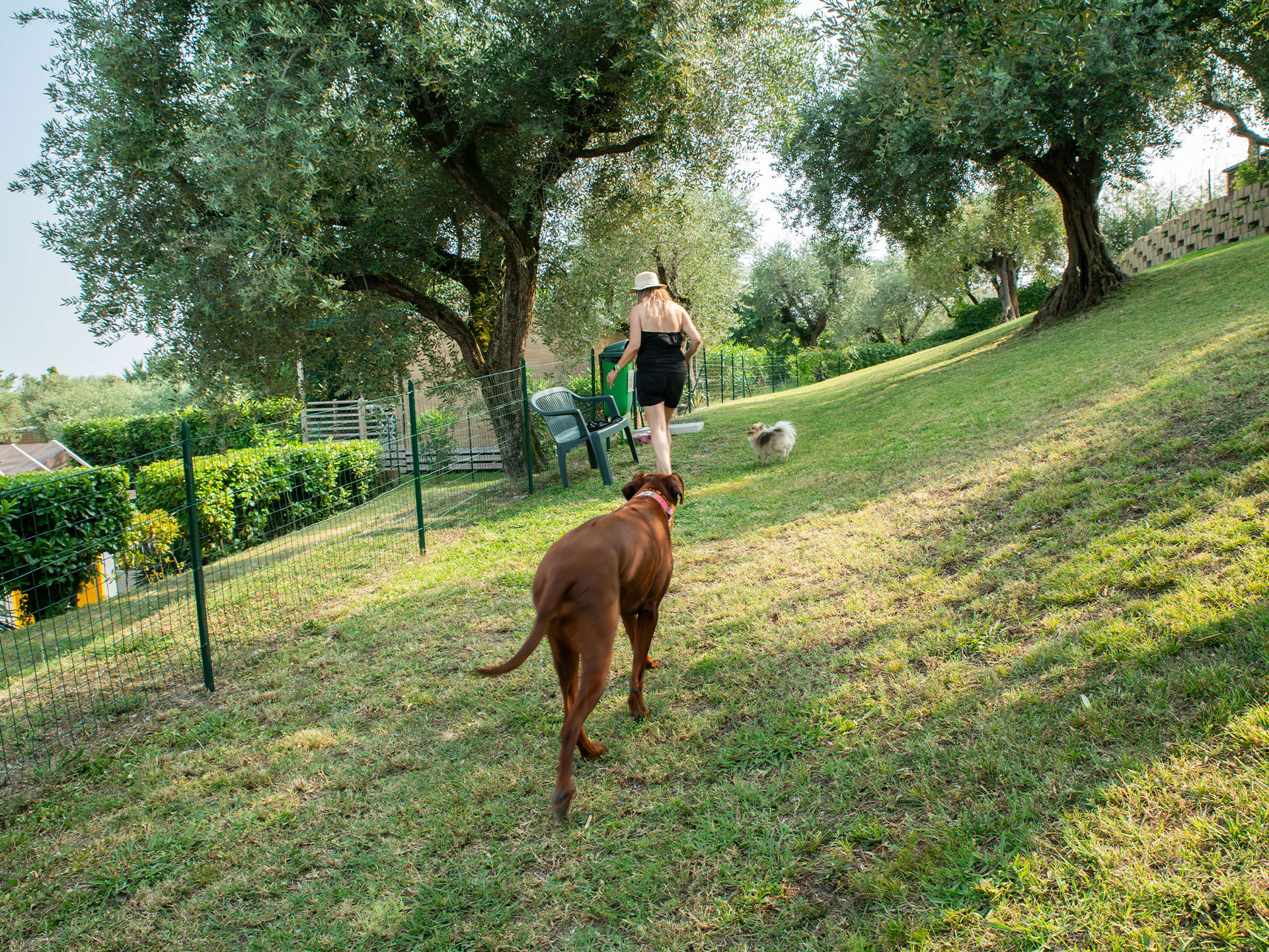 Auf dem Camping della Colombaia haben wir einen eingezäunten Bereich, der Hunden gewidmet ist, wo sie Kontakte knüpfen und sich sicher austoben können. Sie können sich auch zusammen auf unserem privaten Bootssteg am See entspannen und das atemberaubende Panorama genießen. Hunde müssen an der Leine geführt werden und sind im Restaurant erlaubt, aber um die Sicherheit und den Komfort aller Gäste zu gewährleisten, sind sie im Poolbereich nicht erlaubt.