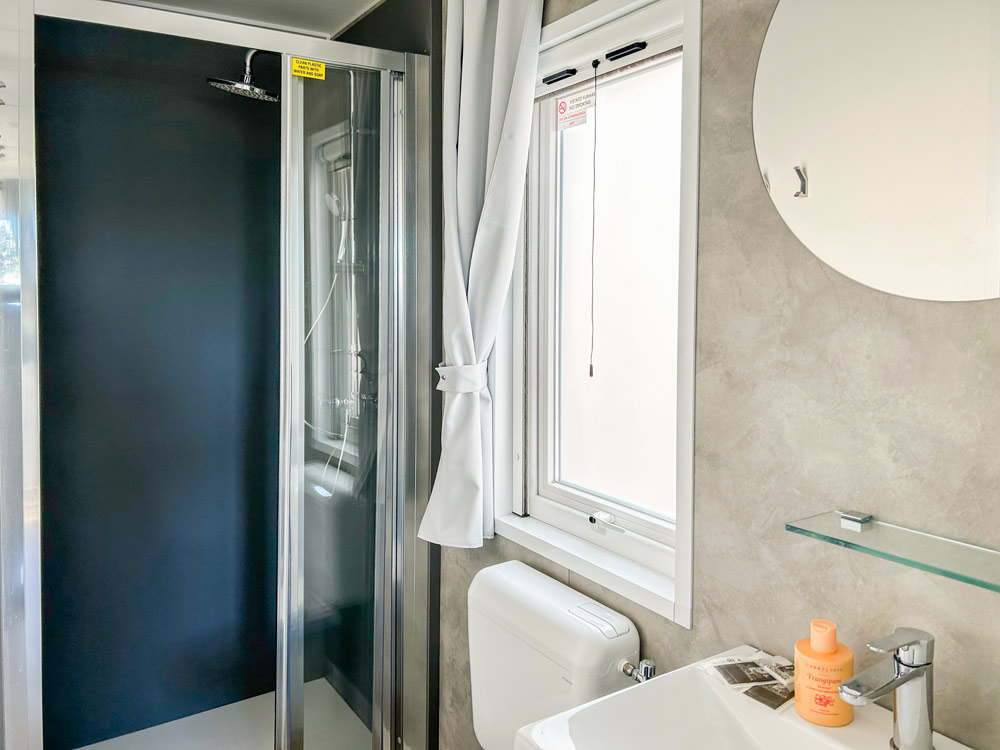 Das Mobilheim verfügt über eine Klimaanlage und einen Parkplatz in der Nähe.