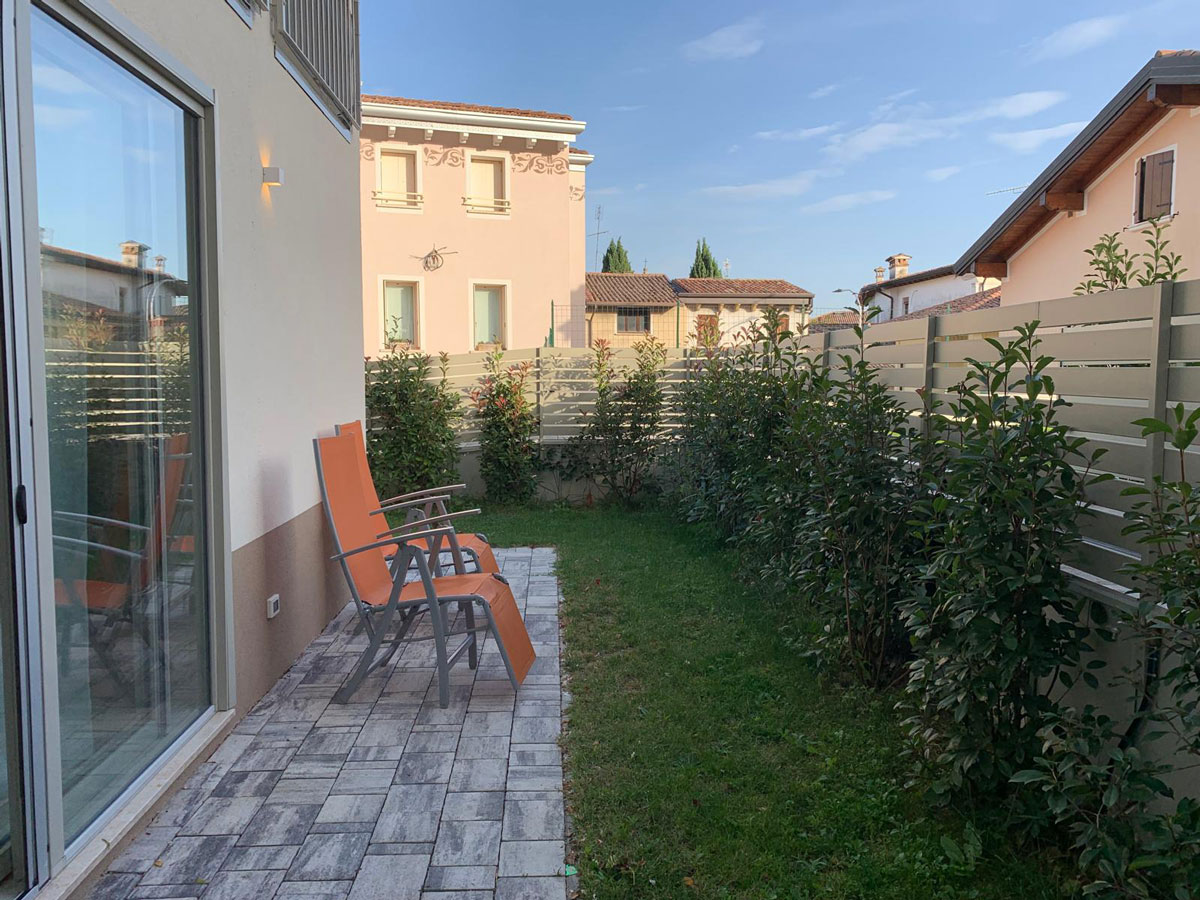 L’accesso avviene tramite un giardino privato, perfetto per rilassarsi all’aperto.